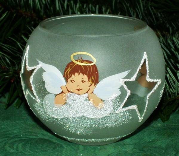 Glas-Windlicht für Teelicht - Engel - Putte - Sterne