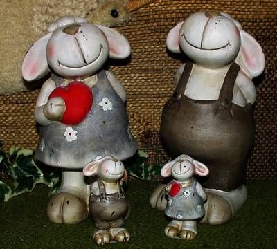 Lamm-Paar mit Herz mit Kindern aus Keramik