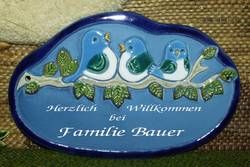 Handgetöpfertes Keramiktürschild - Vogelfamilie